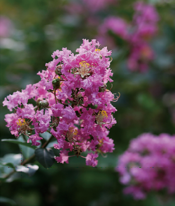 紫薇树姿优美,树干光滑洁净,花色艳丽;开花时正当夏秋少花季节,花期长,故有“百日红”之称,又有“盛夏绿遮眼,此花红满堂”的赞语,是观花、观干、观根的盆景良材。